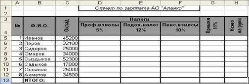 2.Создайте таблицу, внесите в нее исходные данные задачи