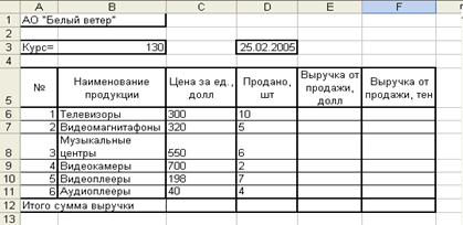 Упражнение 2. Используя возможности Excel, найти сумму выручки от продаж в рублях и долларах.