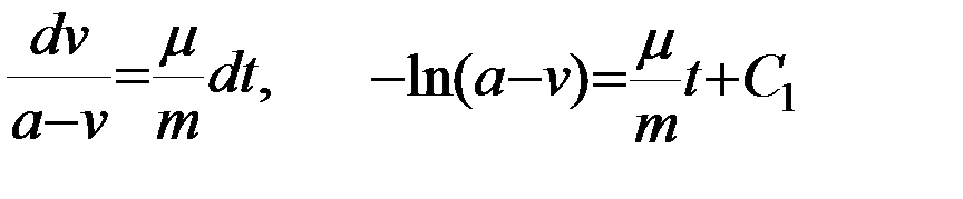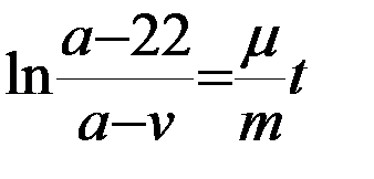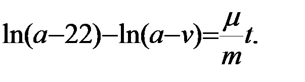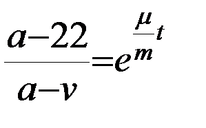 4. При известных начальных условиях: t=0, v0= 22 м/c получаем С1= -ln(a-22). Тогда уравнение примет вид: