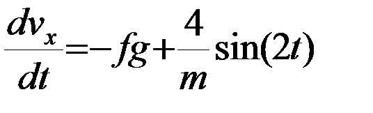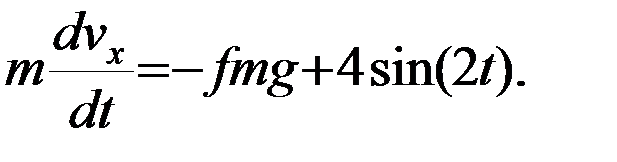 , поэтому 0=N-mg, откуда N=mg. Следовательно, Fтр=fmg. Учитывая, что F=4sin(2t), уравнение примет вид: