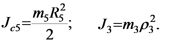 9. Осевые моменты инерции подвижного блока 5 и ступенчатого шкива 3 определяется выражениями:
