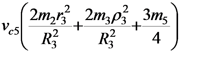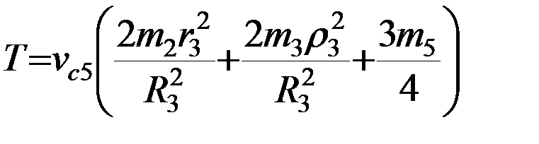 5. Кинетическая энергия Т, которую получила система после того, как груз переместился вдоль наклонной плоскости на расстояние s1, зависит от искомой скорости vc5. Поэтому все скорости, входящие в выражение кинетической энергии данной механической системы, выразим через скорость vc5.