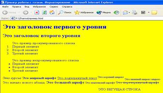 Упражнение 1. Создать следующий HTML- документ, используя тэги форматирования текста