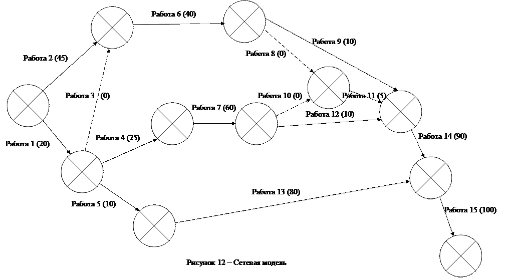 Перенесем представленные работы в сетевую матрицу, учитывая их последовательность, продолжительность и исполнителей (рис. 11).