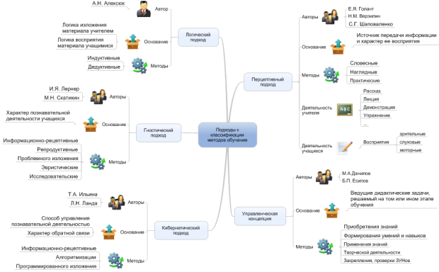 В теории обучения предложены различные подходы к классификации методов обучения: перцептивный, логический, гностический, кибернетический (рис. 11.1).