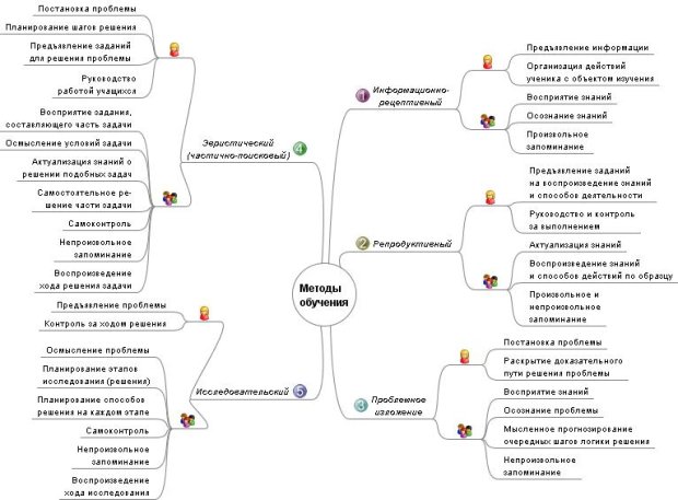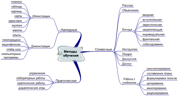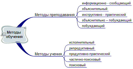 В классификации методов обучения М.И.Махмутова по видам деятельности субъектов образовательного процесса выделены методы преподавания (англ. methods of instruction) и методы учения (англ. learning methods), показанные на рис. 11.3.