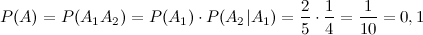 Задание. В урне 2 белых и 3 черных шара. Из урны вынимают подряд два шара и назад не возвращаются. Найти вероятность того, что оба шара белые.
