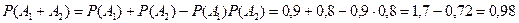 будут равны P(А1) = 0,2; P(А2) = 0,1; P(А3) = 0,7. Используя формулу (3.1), находим
