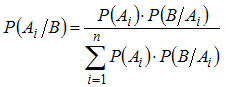 Пример. Три организации представили в контрольное управление счета для выборочной проверки. Первая организация представила 15 счетов, вторая — 10, третья — 25. Вероятности правильного оформления счетов у этих организаций известны и соответственно равны: 0,9; 0,8; 0,85. Был выбран один счет и он оказался правильным. Определить вероятность того, что этот счет принадлежит второй организации.
