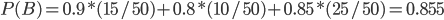 P(B) = 0,2×0,02 + 0,1×0,03 + 0,7×0,05 = 0,042.