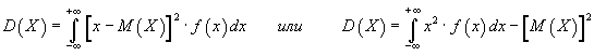 Дисперсия непрерывной случайной величины вычисляется по формуле: