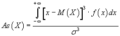 As(X) = [(x1-M(X))3p1 + (x2-M(X))3p2 +... + (xn-M(X))3pn]/σ3