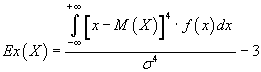Ex(X) = [(x1-M(X))4p1 + (x2-M(X))4p2 +... + (xn-M(X))4pn]/σ4 - 3