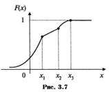 На рис. 3.7 показана Функция распределения непрерывной случайной величины Х, дифференцируемая во всех точках, кроме трех точек излома.