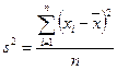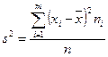 Формулу для дисперсии вариационного ряда можно записать в виде: