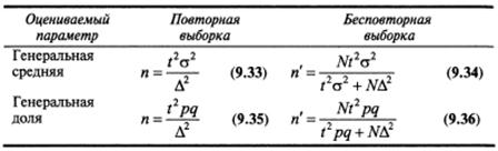 Если найден объем повторной выборки n, то объем соответствующей бесповторной выборки n' можно определить по формуле: