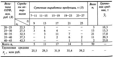 Данные о статистической зав-ти удобно задавать в виде корреляционной таблицы.