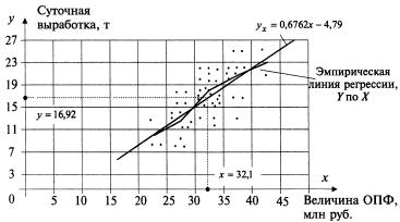 Вычисленные групповые средние графически в виде ломаной, называемой эмпирической линией регрессии У по Х.