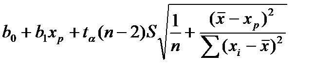 Доверительный интервал для М(Y/X=xр) имеет вид: