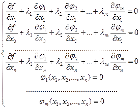 Определение 5.6. Функция L (x1, x2,…, xn) = f (x1, x2,…, xn) + λ1φ1 (x1, x2,…, xn) +