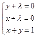 Пример. Найдем условный экстремум функции z = xy при условии х + у = 1. Составим функцию Лагранжа L(x, y) = xy + λ (x + y – 1). Система (5.6) при этом выглядит так:
