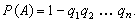 Р (A) = 1 — q 1 q 2... q n.(*)