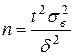 , из полученной выше формулы (2) можно рассчитать соответствующий (минимально необходимый) объем выборки:
