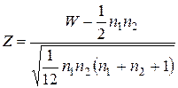 Предварительно расположим элементы обеих выборок в виде одного объединенного вариационного ряда (в порядке неубывания наблюдаемых значений). Каждому элементу объединенного ряда присвоим ранг – порядковый номер в ряде. Если несколько элементов объединенного ряда совпадают по величине, то применим так называемый способ средних рангов, а именно каждому из элементов однородной группы присвоим ранг, равный среднему арифметическому их порядковых номеров.