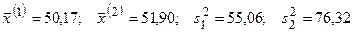 Предварительно для данных выборок найдем выборочные средние и исправленные дисперсии: