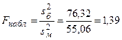 Далее вычислим наблюдаемое значение статистики Фишера: