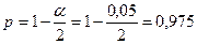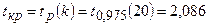определяем критическую точку статистики Стьюдента в соответствии с равенством