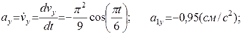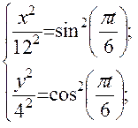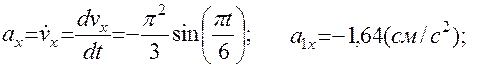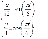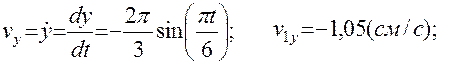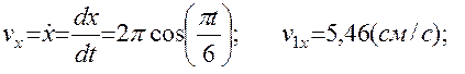 x1=12sin(πt/6)=6(см), y1= 4cos(πt/6)= 3,48 (см).