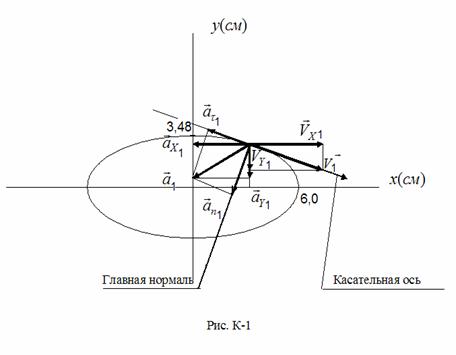 – уравнение траектории точки – эллипс с полуосями 12 см и 4 см (рис. К -1).