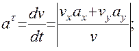 Скалярное касательное ускорение точки в данный момент времени равно первой производной от скалярной скорости по времени или второй производной от естественной координаты по времени.