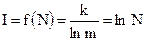 Из (1.7) видим, что количество информации зависит не только от N, но и от объема используемого алфавита. Желательно убрать эту зависимость. Сделать это можно, если учесть, что в (1.3) не накладывается никаких ограничений на величину k, кроме того, что