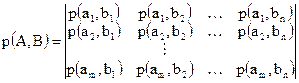 Объединением называется совокупность двух и более ансамблей дискретных случайных переменных. Рассмотрим объединение двух объектов А и В. Пусть число возможных состояний объекта А равно m, а объекта В – n. Возможные состояния объектов обозначим соответственно: