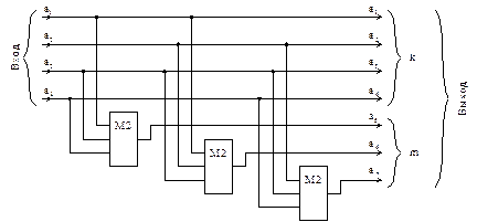 ) комбинация линейного кода. Задержка между моментом появления входной комбинации и окончанием формирования выходной определяется только временем распространения сигнала в одном сумматоре