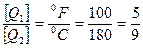 Числовое значение интервала между началами отсчета по рассматриваемым шкалам, измеренного в градусах Фаренгейта ([Q]l = F), равно 32. Переход от температуры по шкале Фаренгейта к температуре по шкале Цельсия производится по формуле