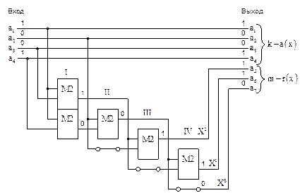Функциональная схема кодера даже проще схемы деления, представленной на рис. 2.5. Упрощение состоит в том, что при кодировании