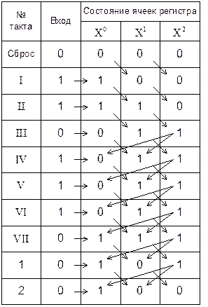 , поэтому не требуются сумматоры по модулю 2, связанные с этими входами. Указанные сумматоры заменяются перемычками, соединяющими вторые входы сумматоров с их выходами.