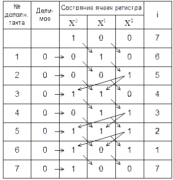 Теперь выясним, какие остатки будут получаться при дополнительных тактах деления. Предположим, что после VII основного такта деления в ячейках регистра получен остаток