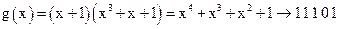 За разрешенные кодовые комбинации циклического кода принимают комбинации, которые делятся без остатка на образующий многочлен. Для рассматриваемого кода это будет иметь место только при выполнении следующих четырех условий: