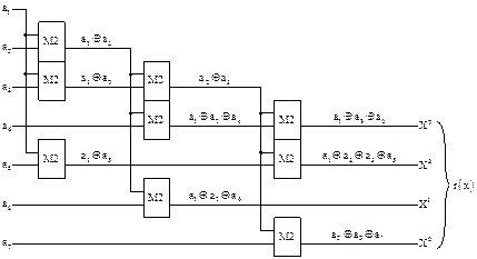 было бы принято. Отсюда следует, что, по крайней мере, два мажоритарных элемента должны фиксировать двойную ошибку, т.е. равенство 1 и 0 в системе проверок.