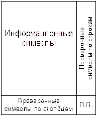 Каждая строка этой таблицы кодируется каким-либо кодом, а затем кодируется каждый столбец, причем не обязательно тем же кодом. Символы, расположенные в правом нижнем углу таблицы, получаются в результате проверки проверочных символов. Они могут быть построены на основе проверки по строкам и тогда будут удовлетворять проверке по столбцам, и наоборот.