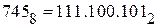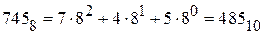 Перевести восьмеричное число 745 в десятичную систему счисления: