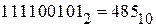 Схема Горнера особенно удобна при переводе чисел из двоичной системы. Имеем: