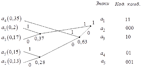 и закодировать знаки первичного алфавита эффективным кодом по методике Хаффмена.