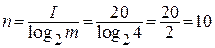 Решение: по условию задачи I =20 бит, m =4, n =?