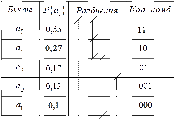 2. Закодировать по методике Шеннона-Фано следующие буквы первичного алфавита