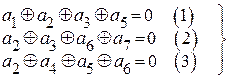 Из системы проверочных равенств (2.17) определяем, какими должны быть проверочные символы при формировании конкретной комбинации безизбыточного кода: